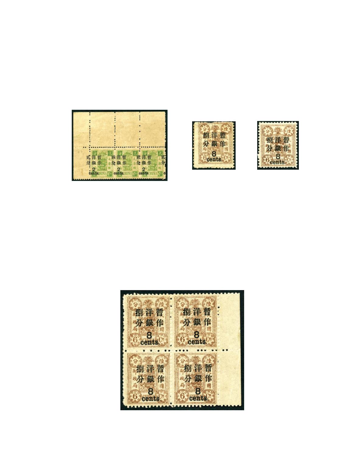 1897 Dowager large figures surcharged 2.50mm on first printing, 8c on 8 cands chocolate block of 4 with right sheet margin, mint