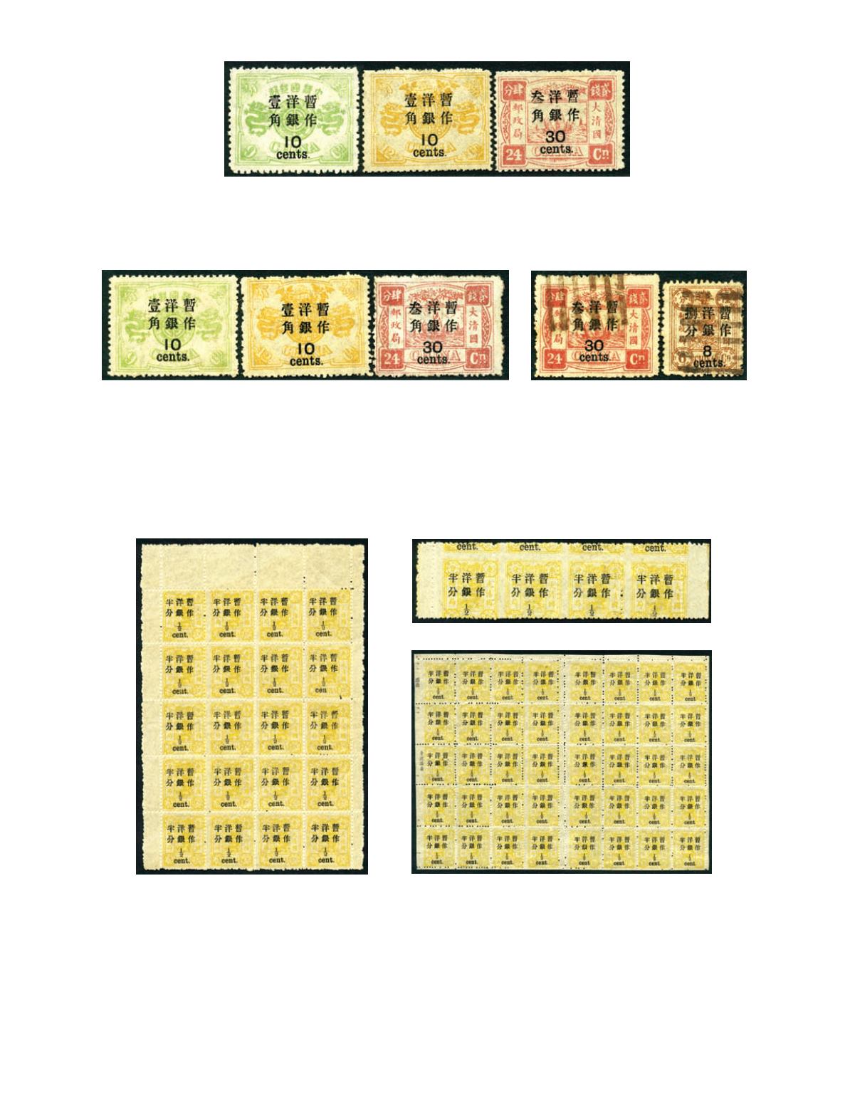 sides sheet margins, surcharge misplaced and perf. misplaced varieties, showing 'cents' on the upper perf. position. unmounted mint