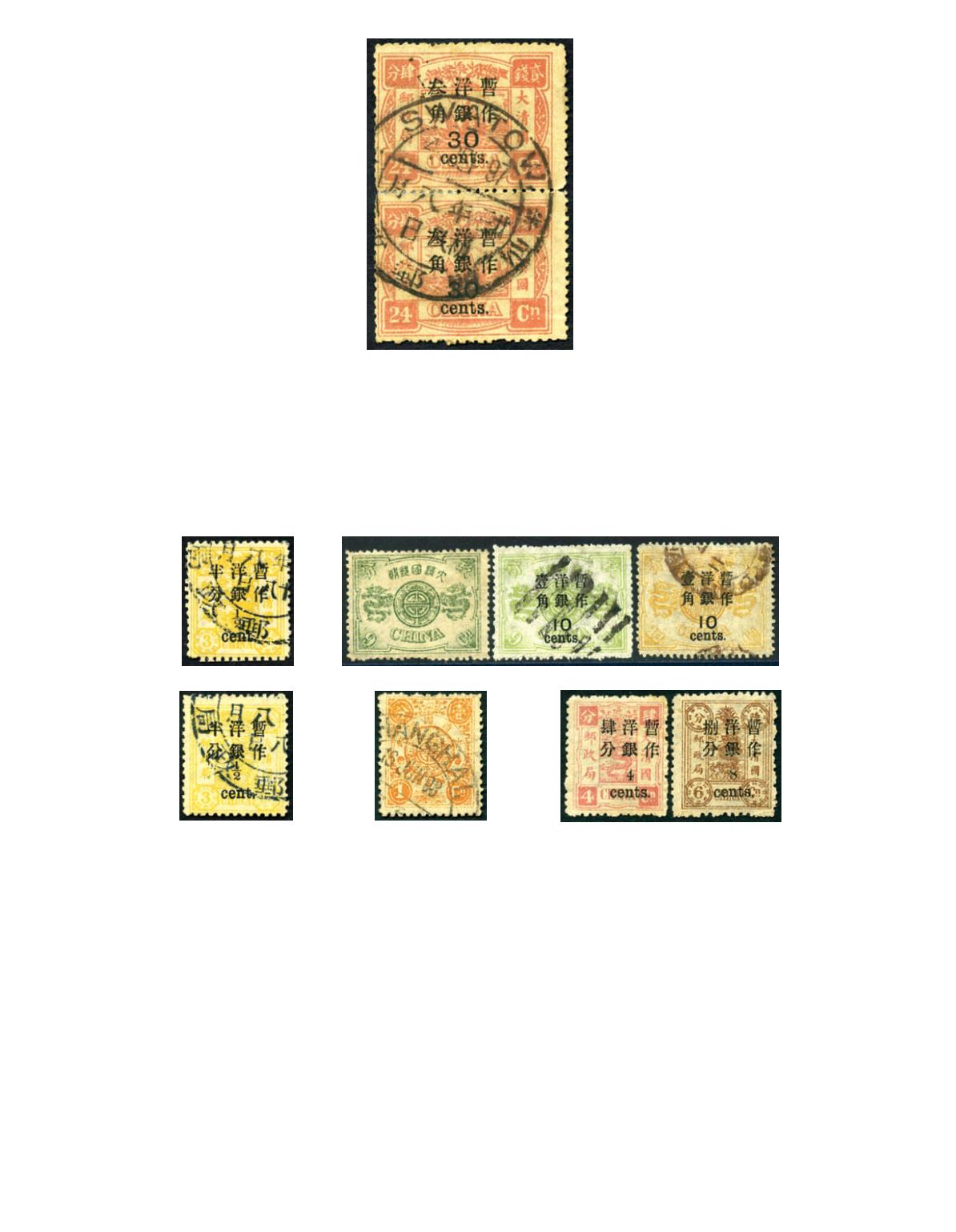 9 cands, 10c on 12 cands both used, nice cancellation, for example 'LUNGCHOW' Dollar chop on small figures 4c, good to fine,