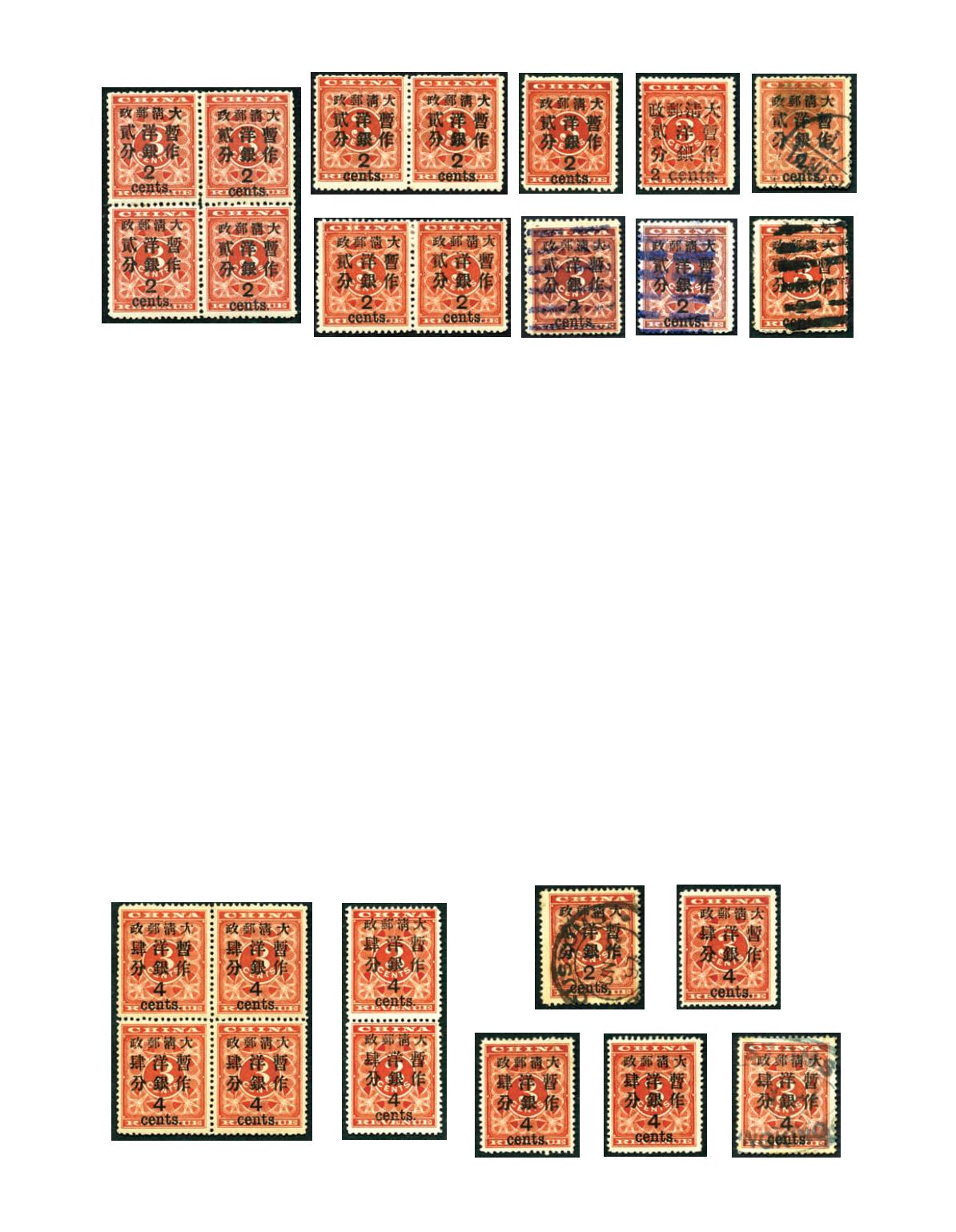 1897 Large figures surcharged 2c on 3c block of 4, skillfully regummed. Chan 88. Photo