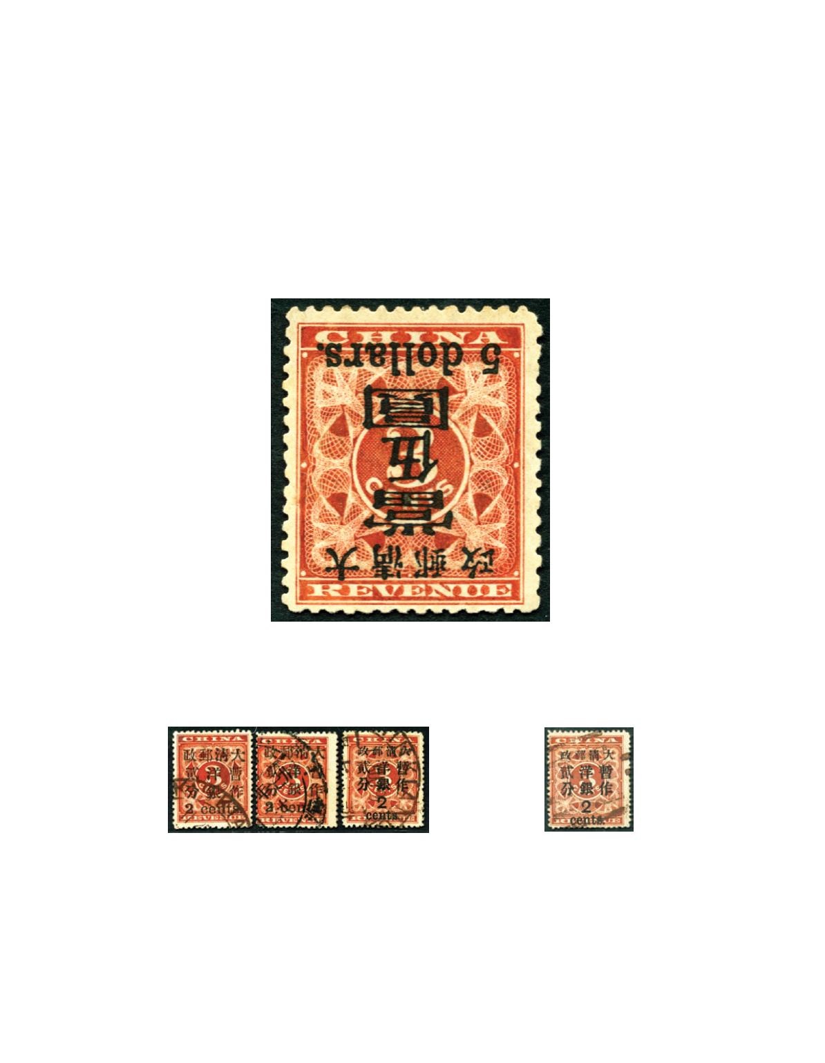 1897 Large figures surcharged $1 on 3c tied by large partial ‘TIENTSIN’ seal chop in blue, straight edge at foot, very late use of seal