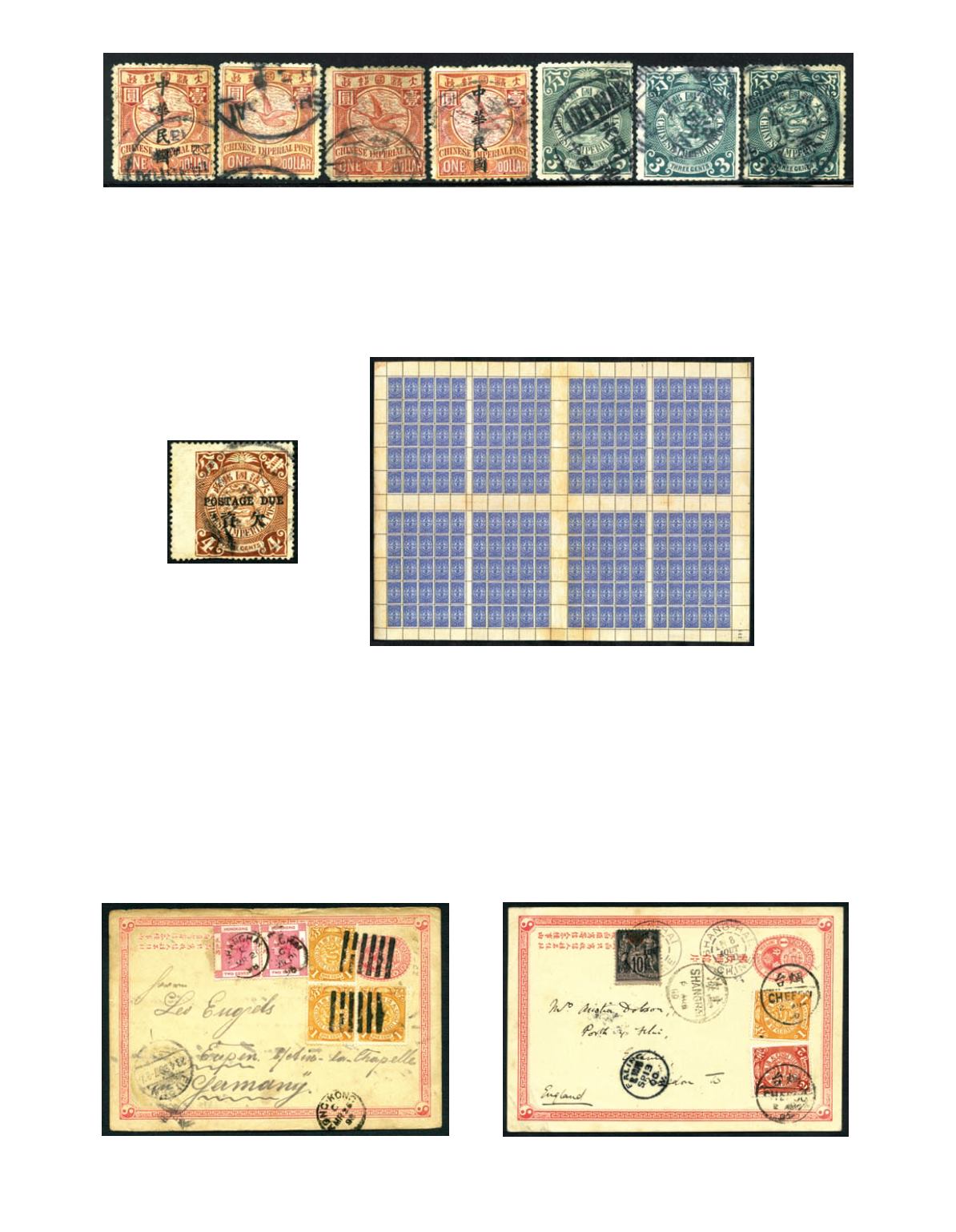 A collection of used Coiling Dragon used stamps hold in stock cards, including Flying Geese $1 x 4, an interesting postmarks, for