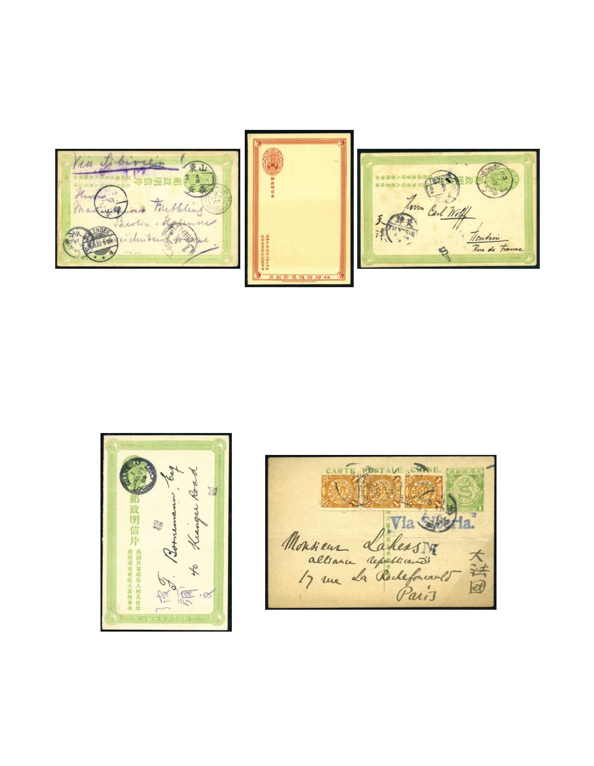 1909 (10 Jan.) Fourth issue CIP Coiling Dragon 1c green postal card with additional CIP Coiling Dragons 1c x 3, sent via Siberia to