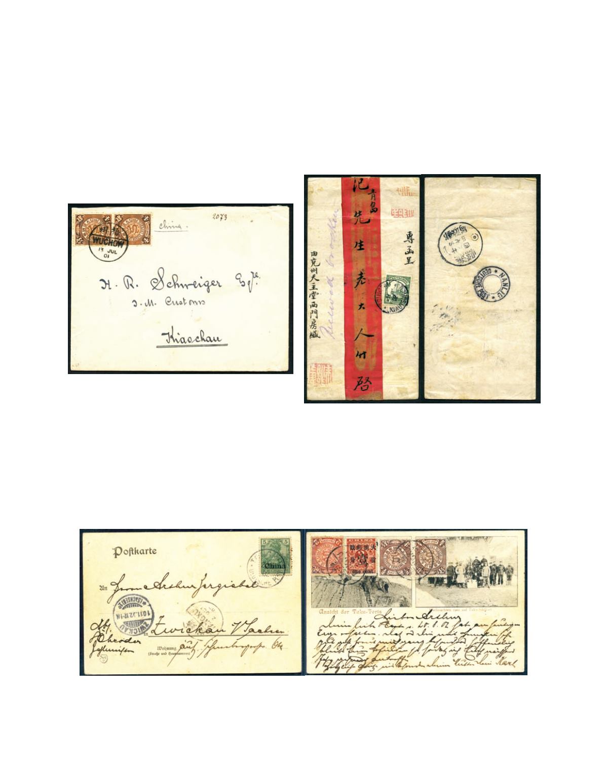 KIAUTSCHOU' cds, on reverse with the rare 'WEIHSIEN/ POST OFFICE' Sun and Moon type single ring cds, and double ring