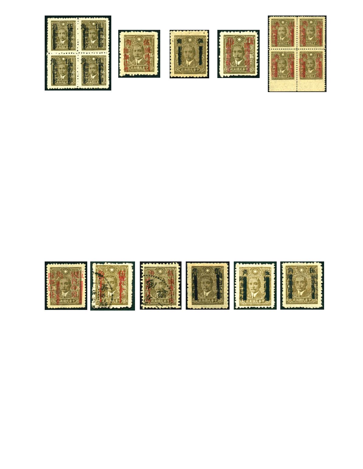 1943 Surcharge of 50 cents with 2 vertical bars on SYS Central Trust print 16c, Hupeh surcharge with DPP surcharge shifted to the