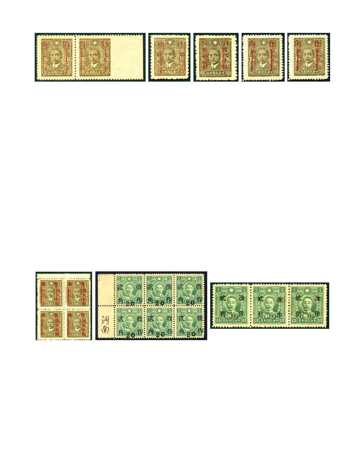 1943 Surcharge of 20 cents Honan surcharged on 13c no watermark HK Martyrs, block of 6 with surcharge shifted downwards