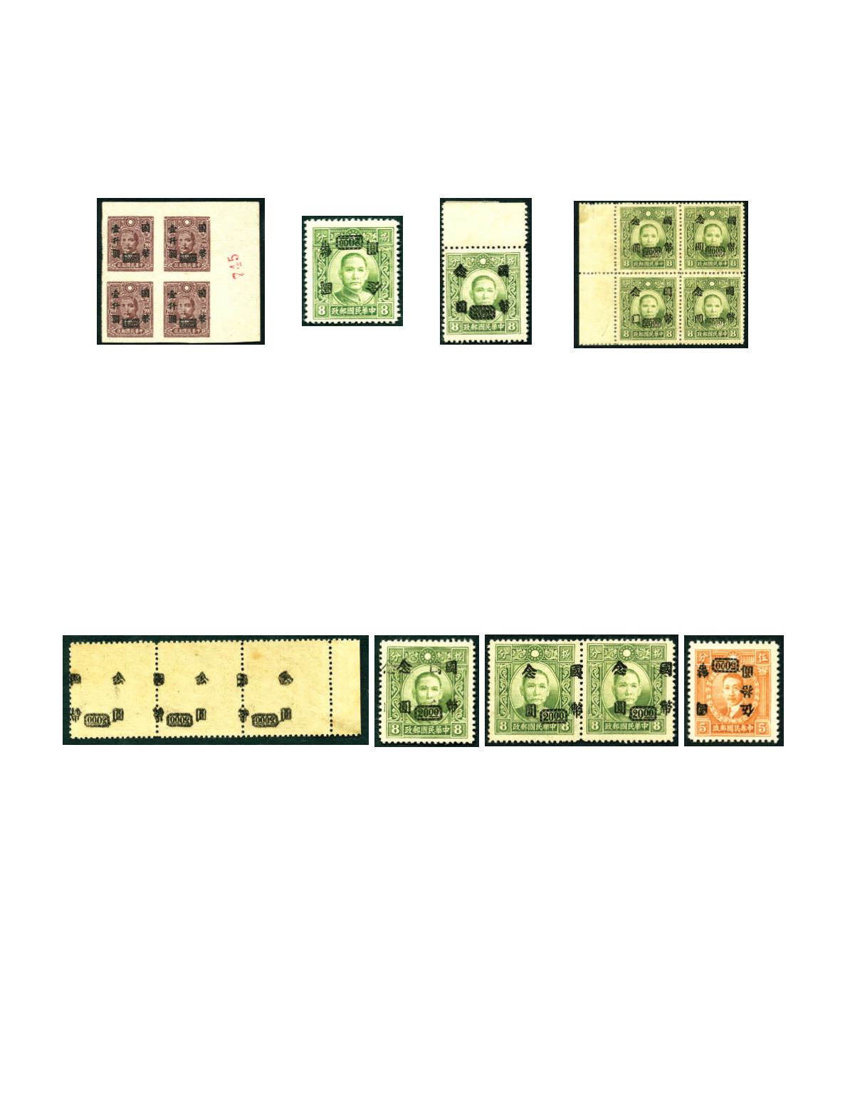 1946 CNC Third Shanghai Union surcharge, $1,000 on $2 block of 4 on SYS Paicheng print, imperf. variety, unused and no gum