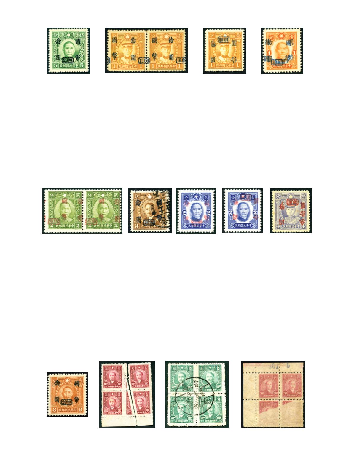 1946 CNC Chungking Dah Tung surcharge $10 on 1c HK Martyrs with watermark, surcharge inverted variety, mint and hinged and
