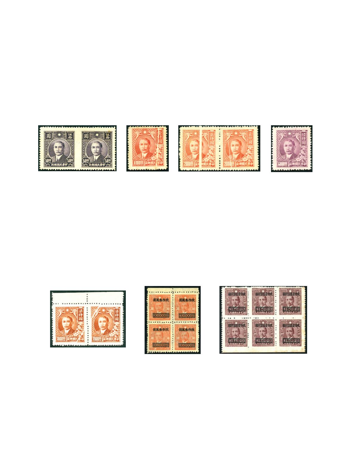 1948 CNC 2nd Union surcharge $15,000 on $4 block of 6, SYS Paicheng print, with bottom imperf. variety, a few toned spots on