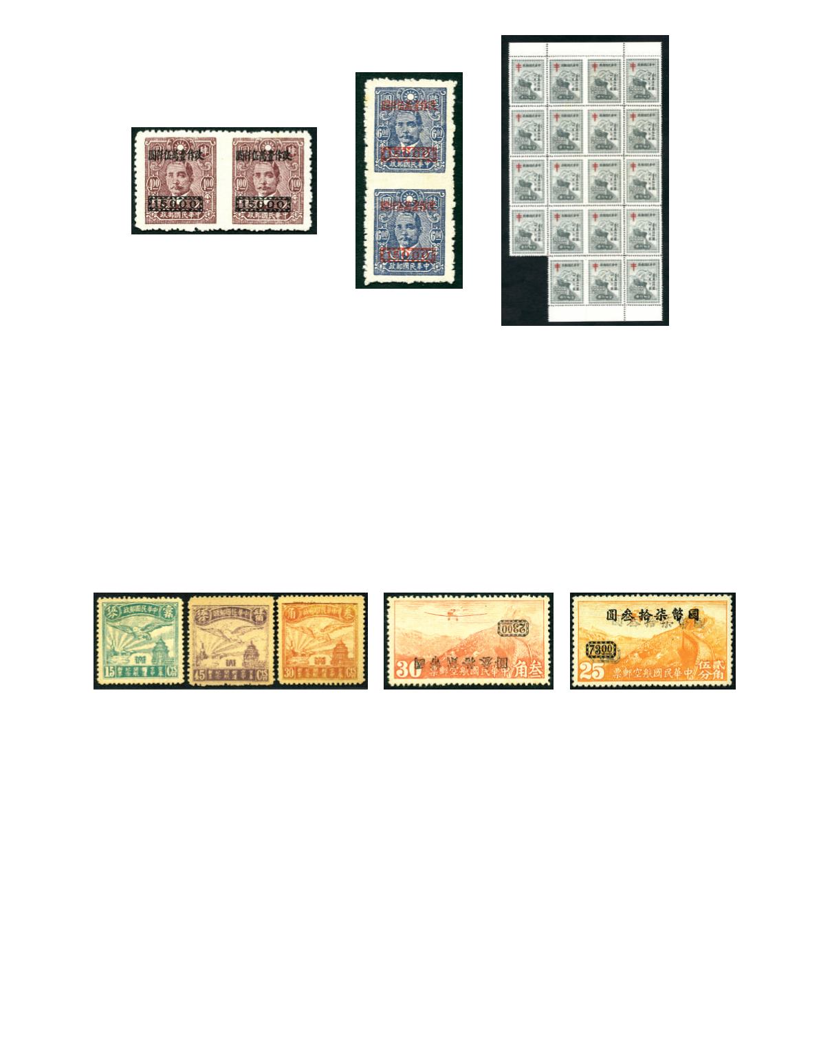 1948 SYS CNC second Union surcharge $15,000 on $6 violet blue SYS Paicheng print vertical pair imperf. between variety, unused