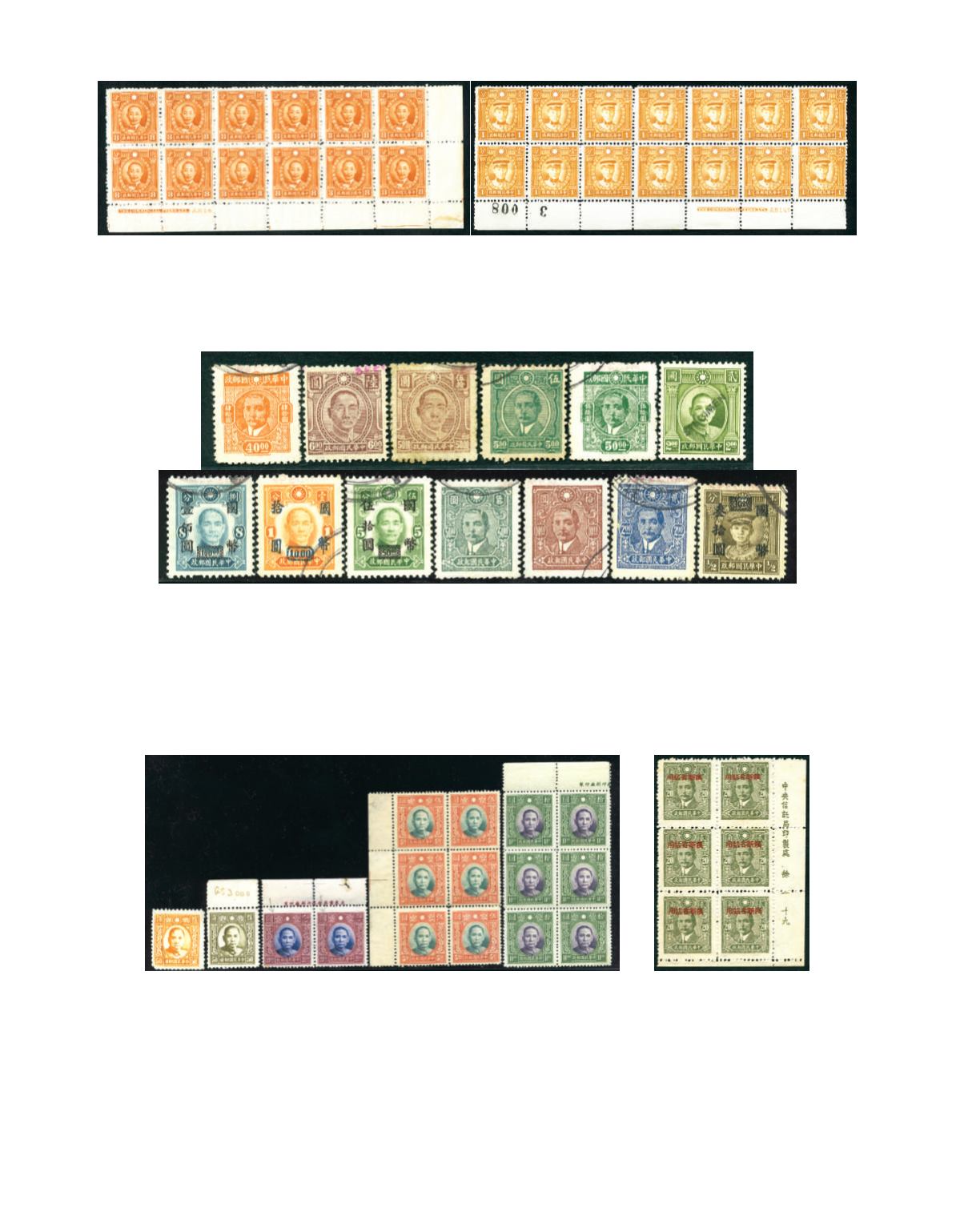 A selection of SYS Central Trust print issues imprint blocks, mostly are block of 6, including opt. 'Limited for use in Sinkiang' on