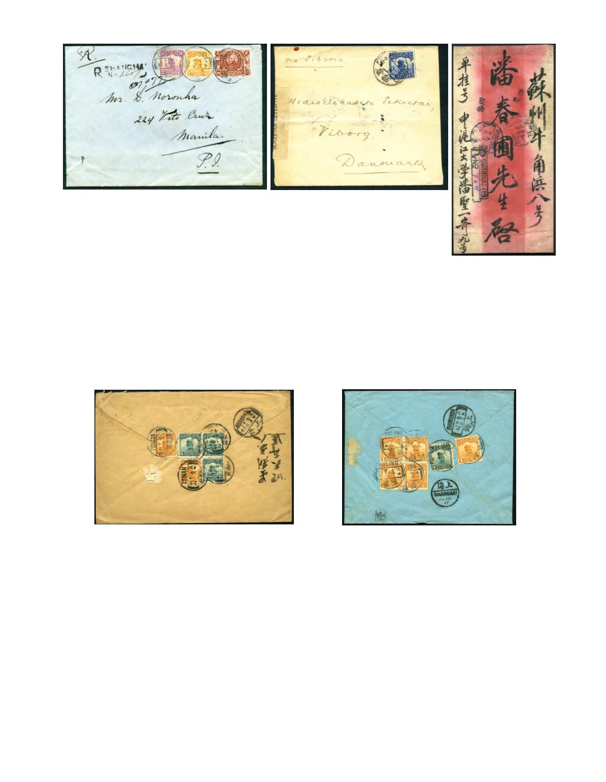 1916 (15 May) A cover from Shanghai reg. to Manila, bearing Junk 1c & 5c, and Republic 20c tied by