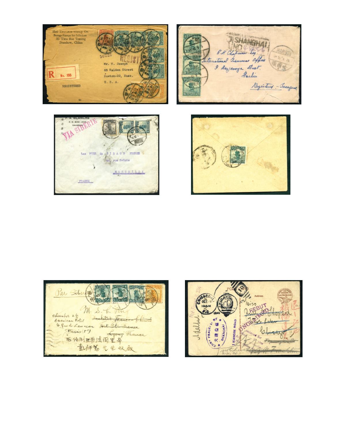 1927 (5 Nov.) A cover from Chaling to Lyon, France, via Siberia, bearing 2nd Peking print Junk 1c and 3c x 3, tied by bilingual