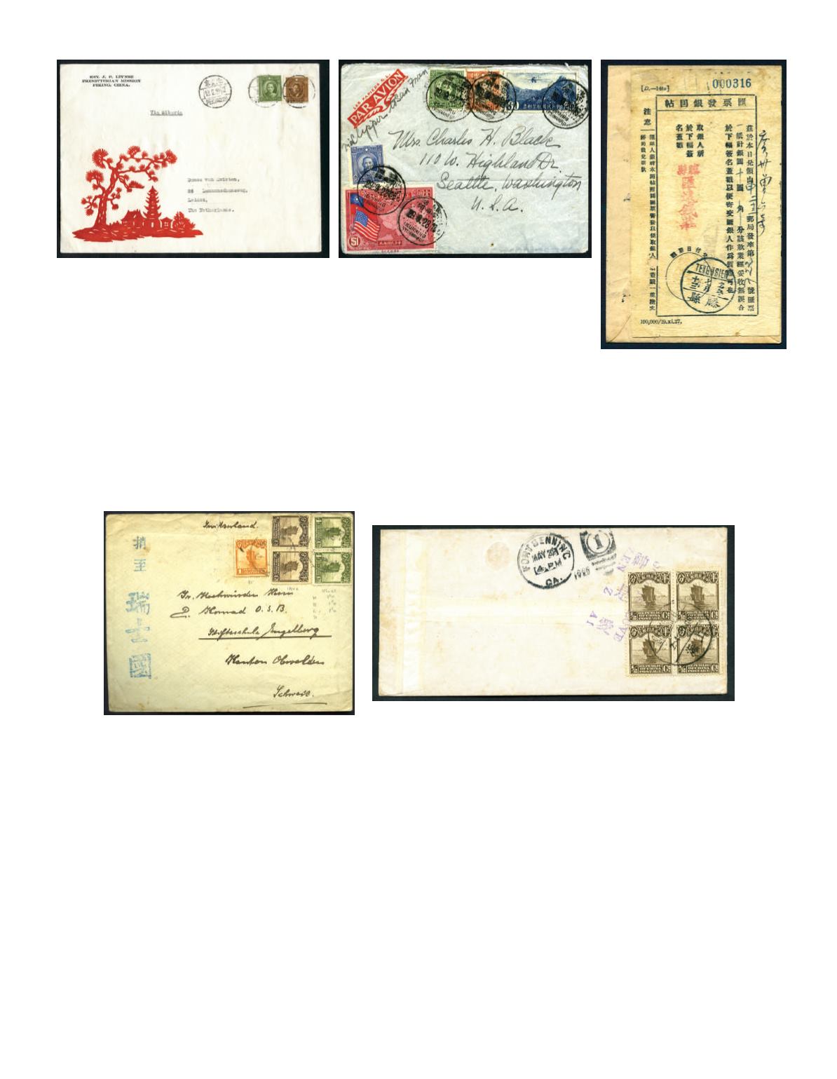 ‘NANKING’ cds, bilingual ‘SHANGHAI/7.4.29’ transit and oval ‘MUNCHEN/11.5.29’ arrival chop. Very fine. Photo