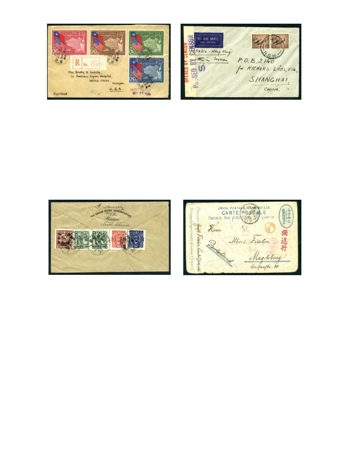 Sinkiang and Yunnan issues, with Kwangtung government red chop. An interesting and scarce postal history document. Very fine.