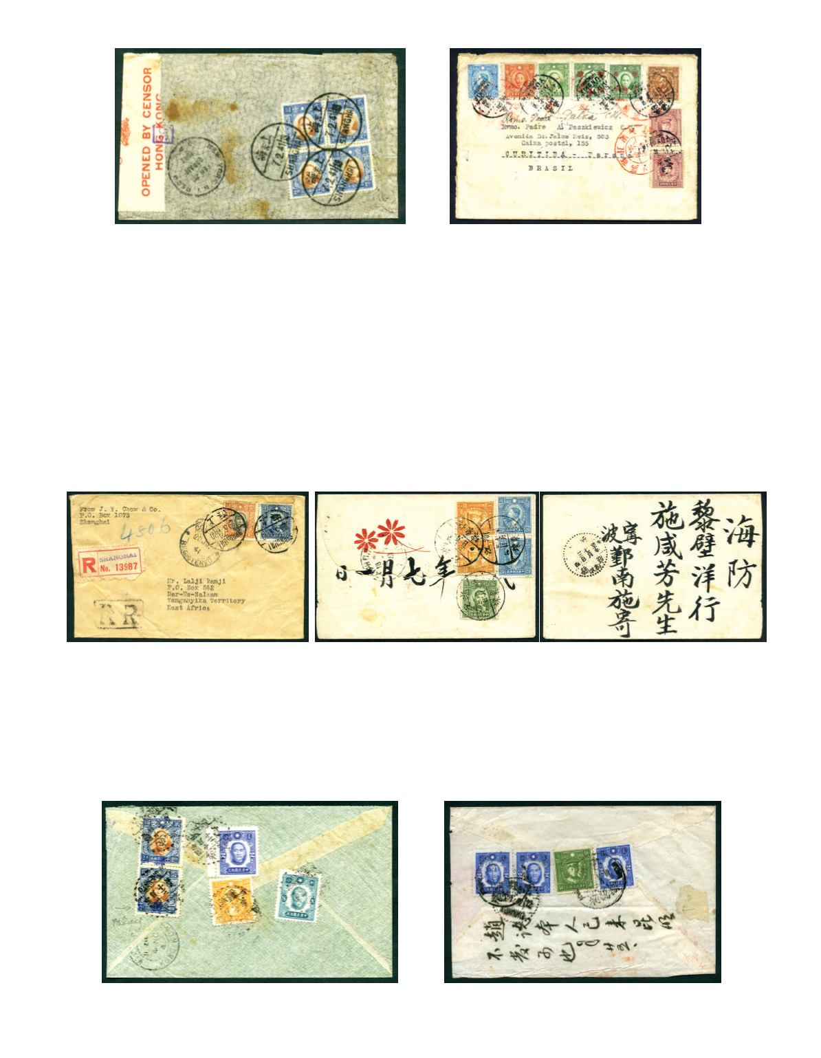 of 6, tied by bilingual 'CHUNGWEI' cds, with 'Opened By Censor Hong Kong' seal label x 4 and Third Reich seal label. Some