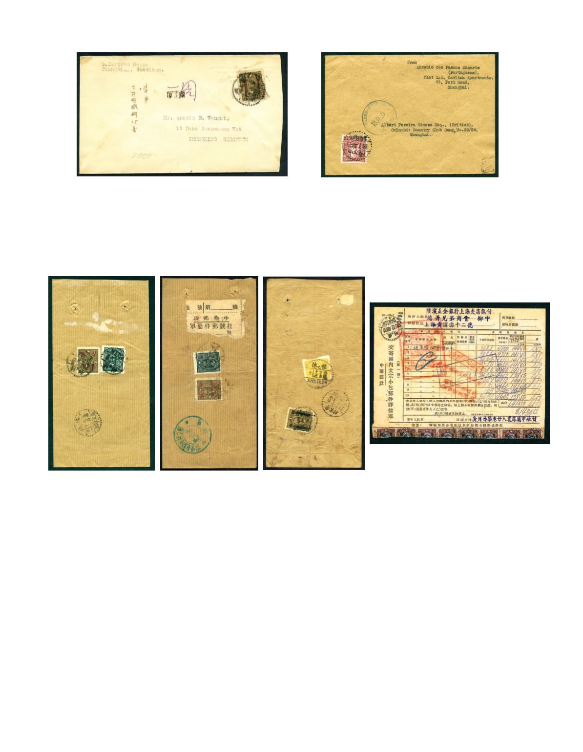 1943-44 Two pieces of parcel receipts from the Japanese occupation period, each bearing opt. ‘For Use In Canton’ on SYS