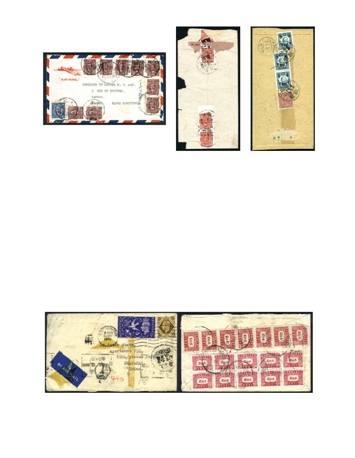 char. ‘ANHWEI’ cds, with bilingual ‘SHANGHAI (S.O.18)/4.9.46’ arrival cds. Fine. Photo