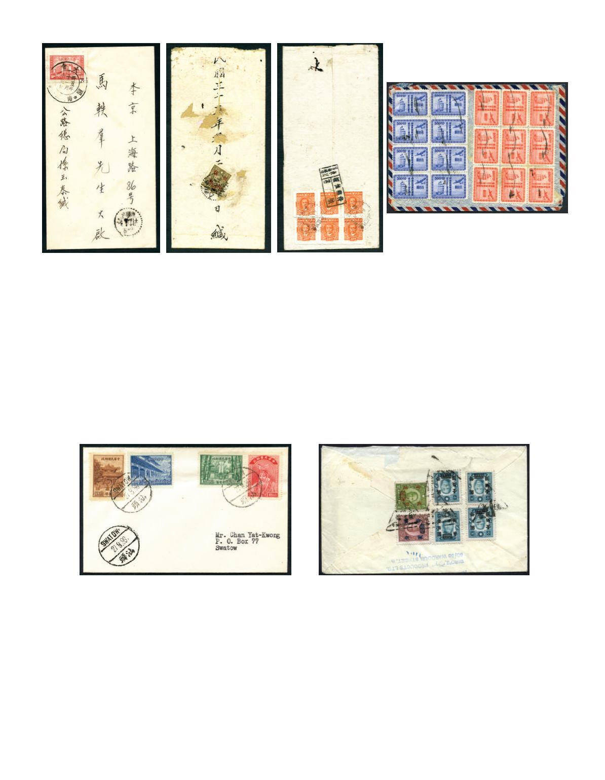 1947 (31 Mar.) A cover from Shanghai Dah Ting print $100 carmine, tied by very clear char. ‘Mobile/Peking-Shanghai Railway’