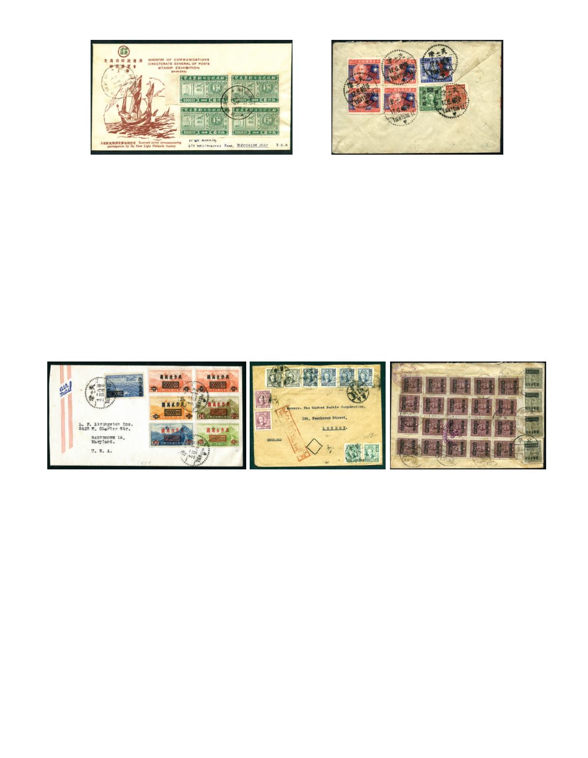 1948 (29 Sept.) A cover from Shantung to London, England, bearing SYS 2nd Shanghai Dah Tung print, $4,000 x 2, $6,000 x 2,