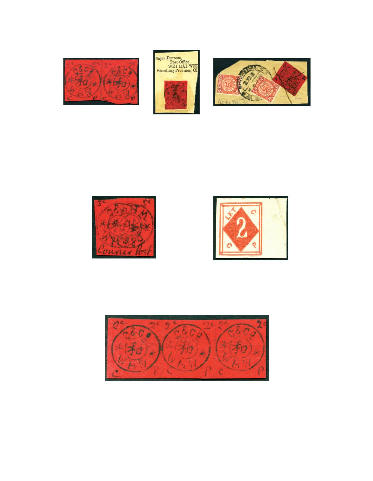 1898 (20 Dec.) A small piece of the combination Wei Hai Wei Courier 2c black on red (Chan LWH1) crossed by pen and mixed with