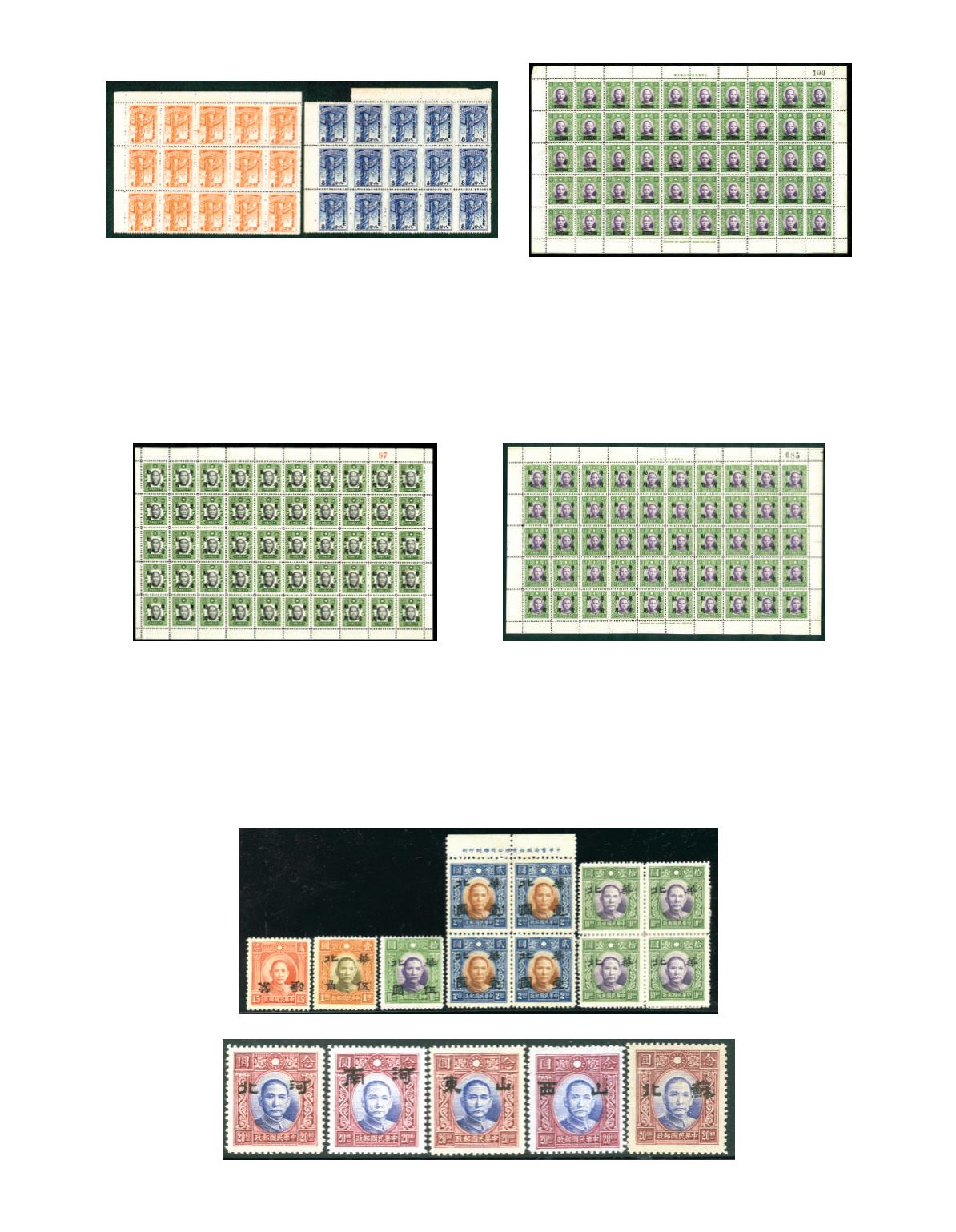 1942 Overprint 'Special for use in Kwangtang District' on SYS Chung Hwa print, Dah Tung no watermark print, New York print