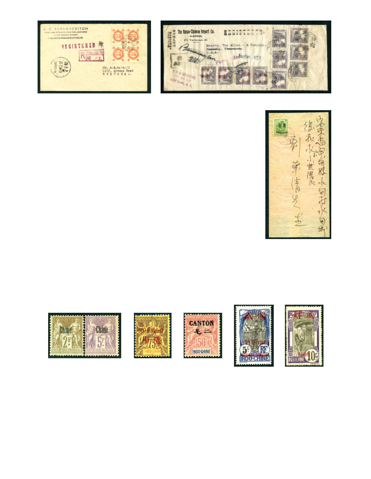 USA, bearing Harbin local opt. ‘ROC’ in red char. On Manchukuo 1y lilac (Chan MOSJ.8.Ai) in