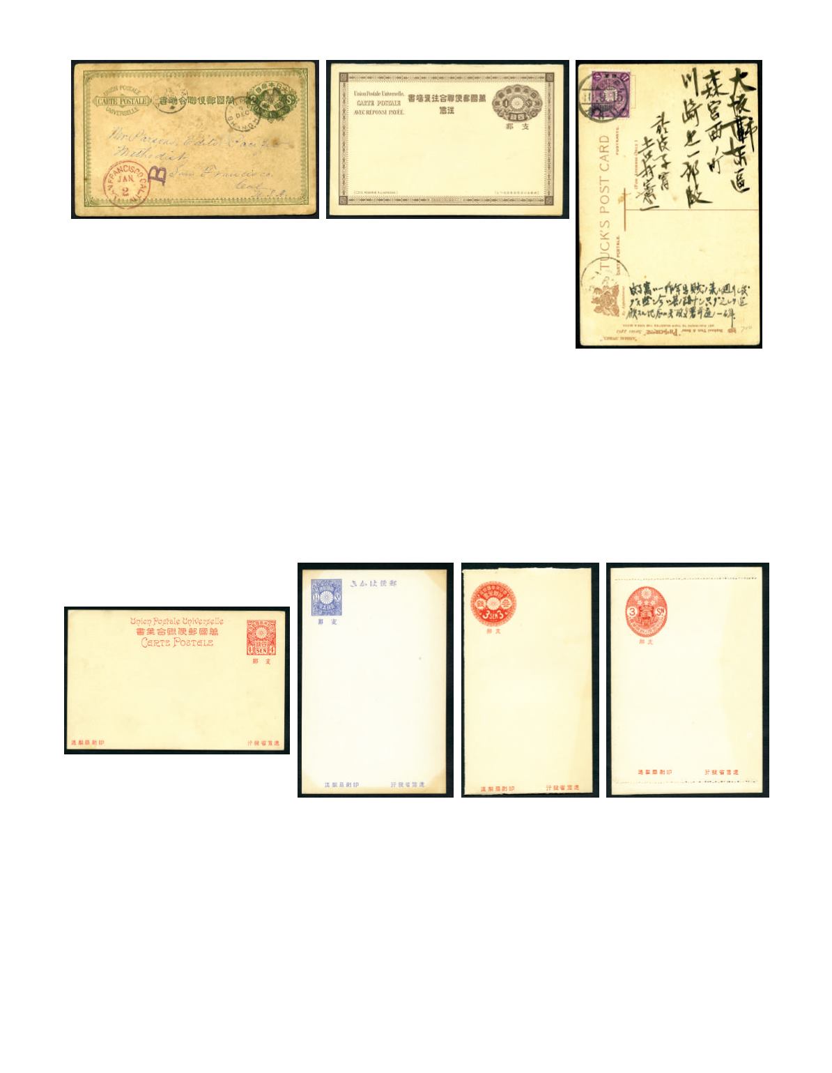 1910-15 (Japanese P.O. in China) stamped postal cards, 1-1/2s x 3 different issues, light age toning. (JSCA ZC6 & 11). Photo