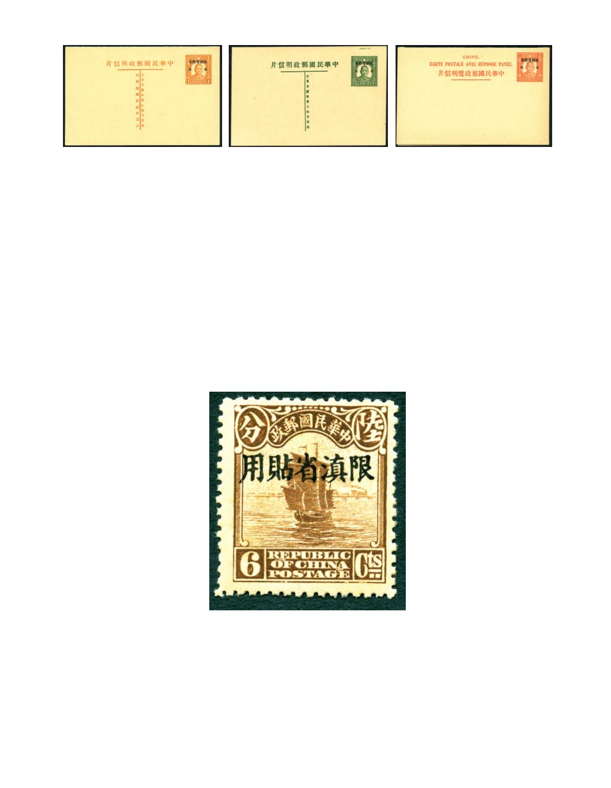 Use in Yunnan'. We have identified one or two overprints in each sheet which are similar to the above stamp. These sheets are