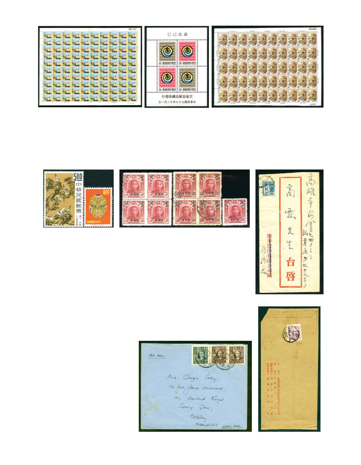 A small collection of Taiwan mint and used stamps, including 1965 Madame Chiang hinged set,