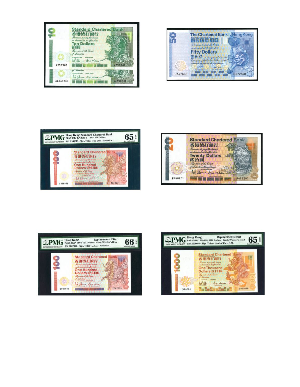 The Standard Chartered Bank of Hong Kong 1993 $100 No. Z007699, 66 EPQ. Photo