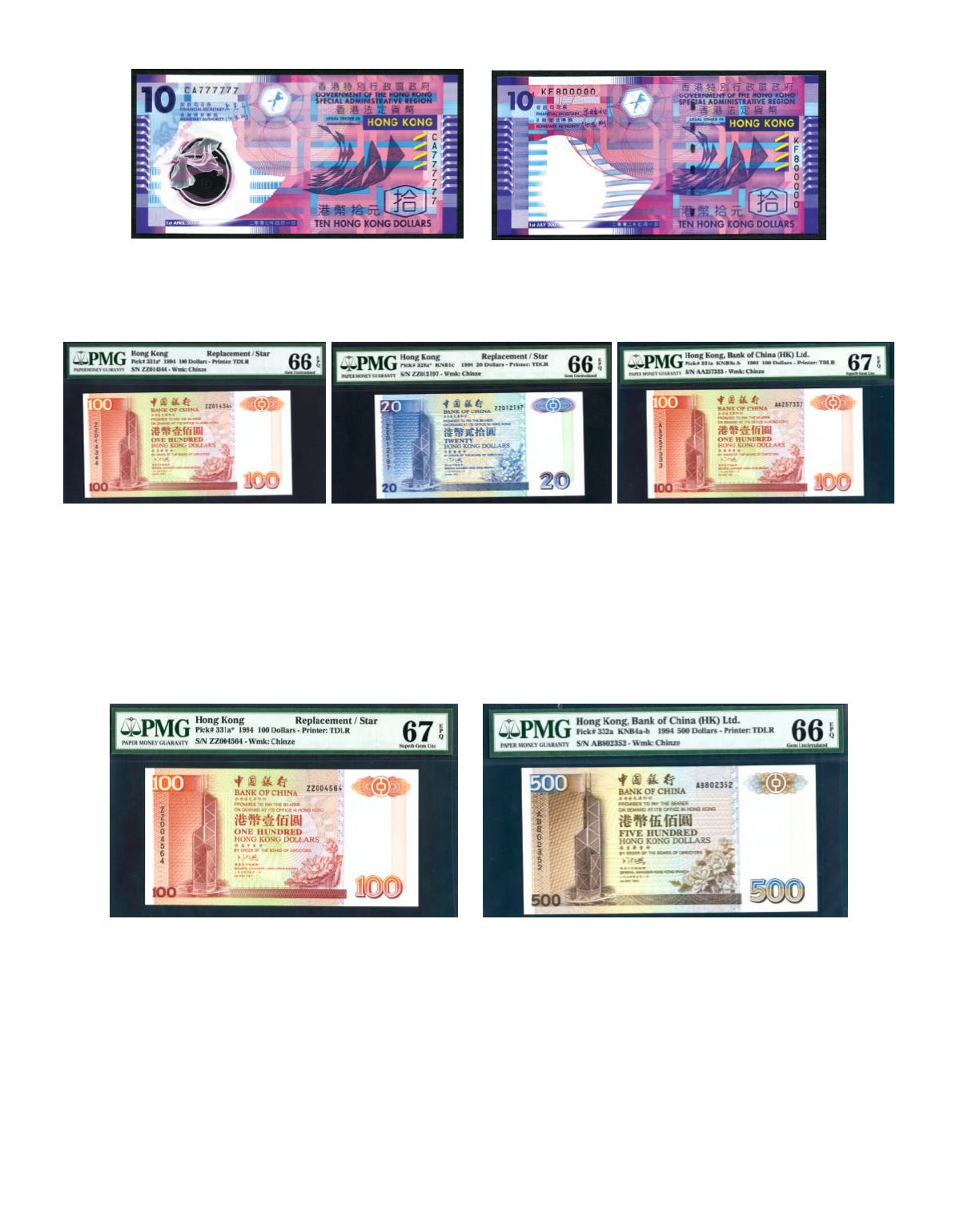 The Hong Kong Government $10 (2002) and (2003) with No. BX100000, KJ200000, CU300000, HC400000, PH500000,
