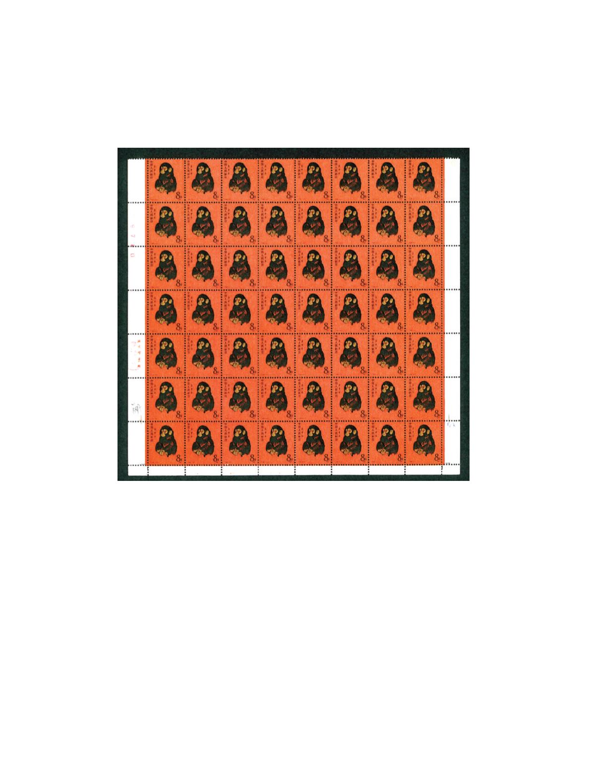 1980 (T46) Year of the Monkey, large block of 56 with margins on 3 sides, fresh gold colour and unmounted mint, very fine.