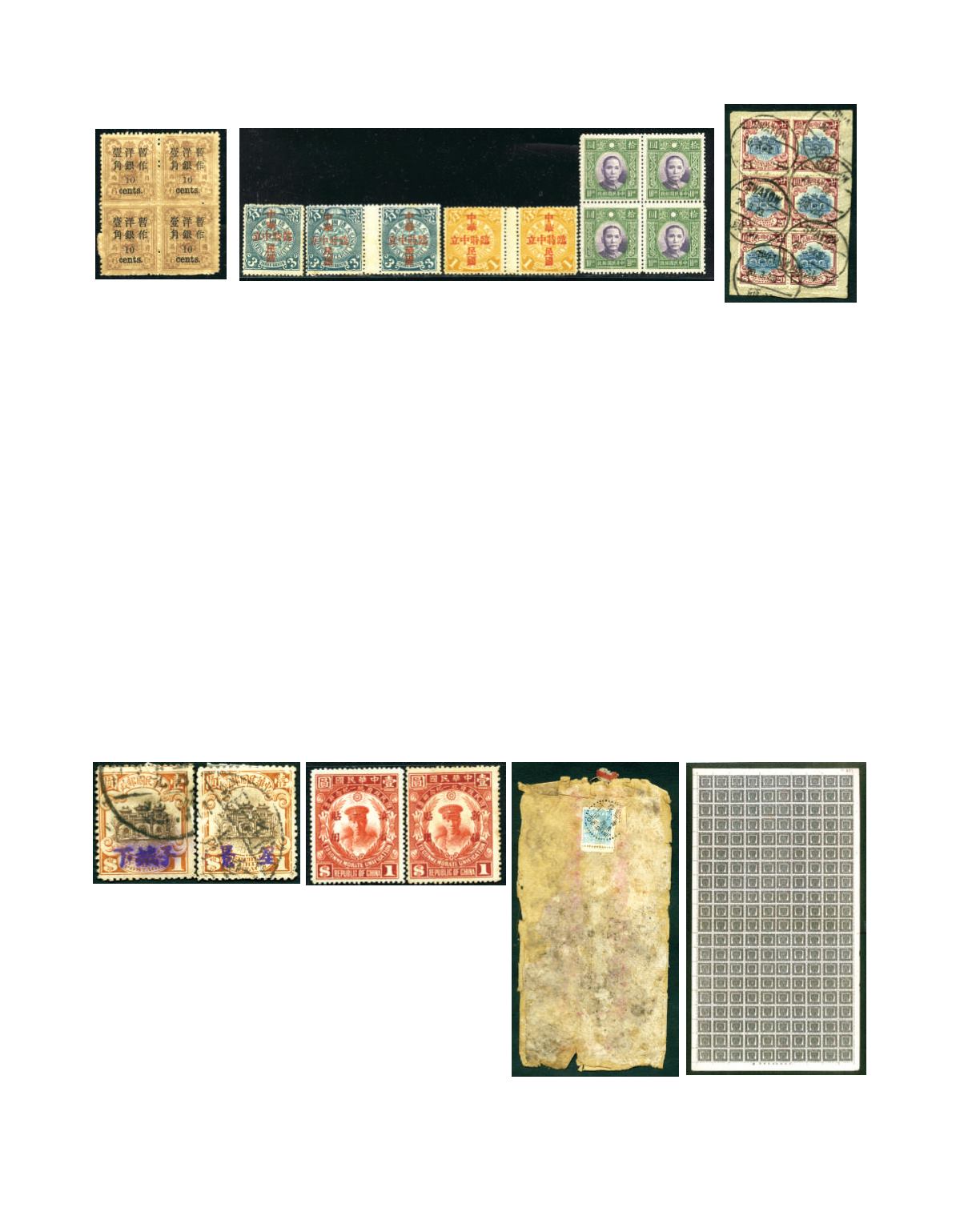 on 1c and 3c gutter pair, mint, and 3c single. SYS Chung Hwa print $10 block of 4, mint, and a lot of SYS from different periods,