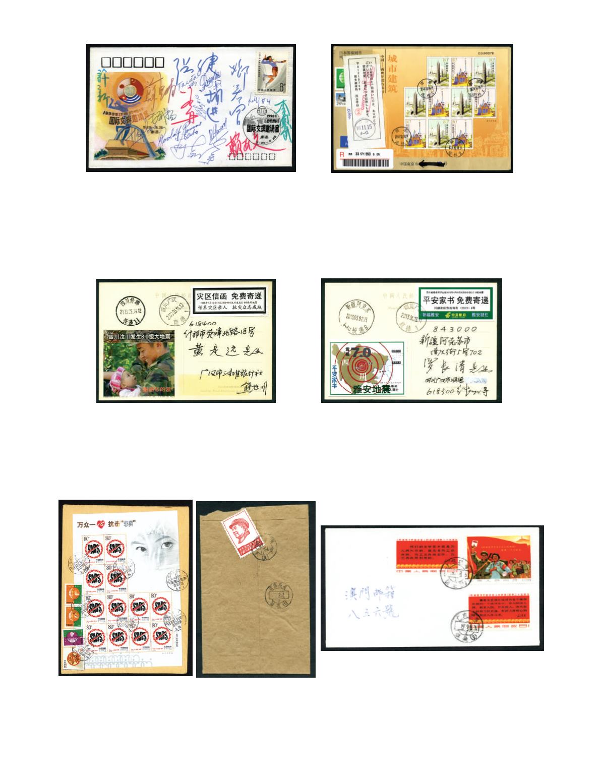 2008 (23 Apr.) A group of the postage free postcards of the Szechwan earthquake from Szechwan to other cities, total 8. fine.