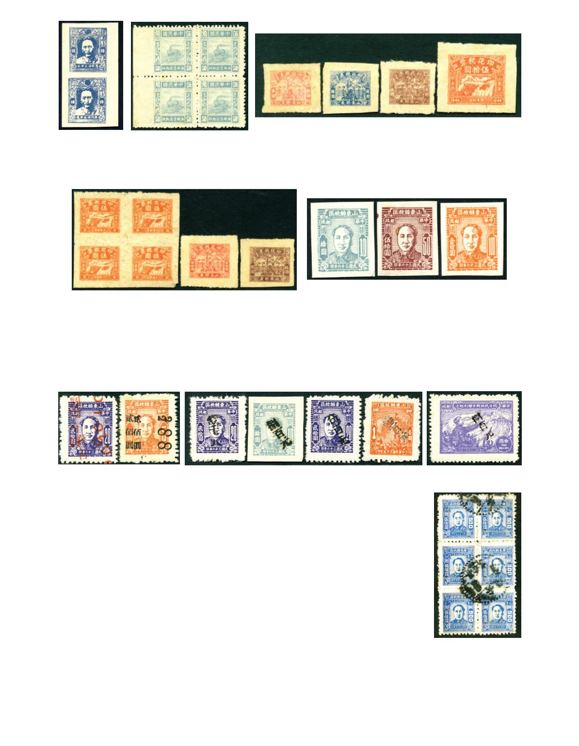 1947 Shantung hand surcharge with small char. Yuan in one vertical line, short set of 4, including $300