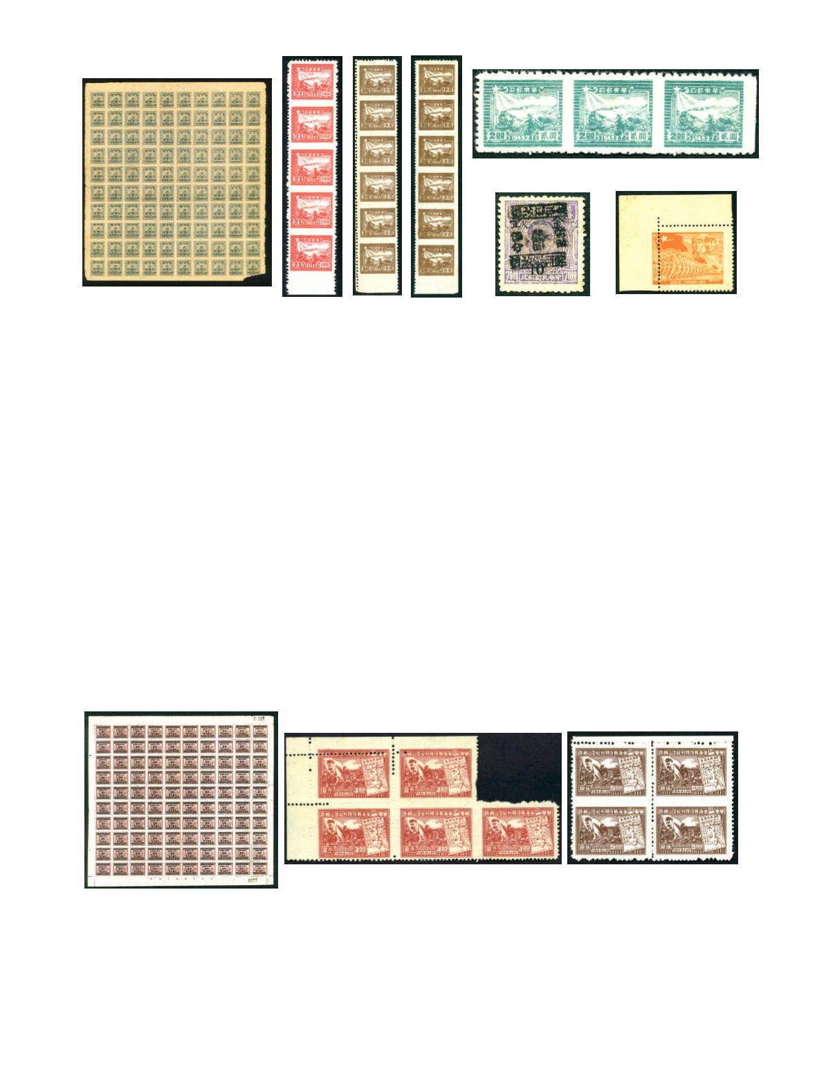 1949 Tientsin Train & Postal Runner issue, $5, vertical strip of 6, imperf. between and at bottom margin, also block of 20 (10 x