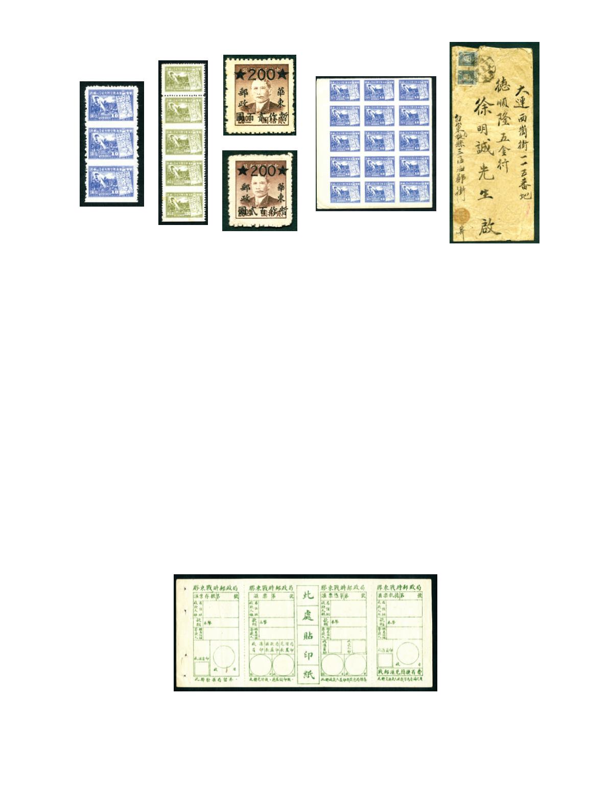 1940’s A cover from Shantung to Dairen, bearing surcharge with ‘Temporarily used for’ on Chu Teh, War Time Post imperf.