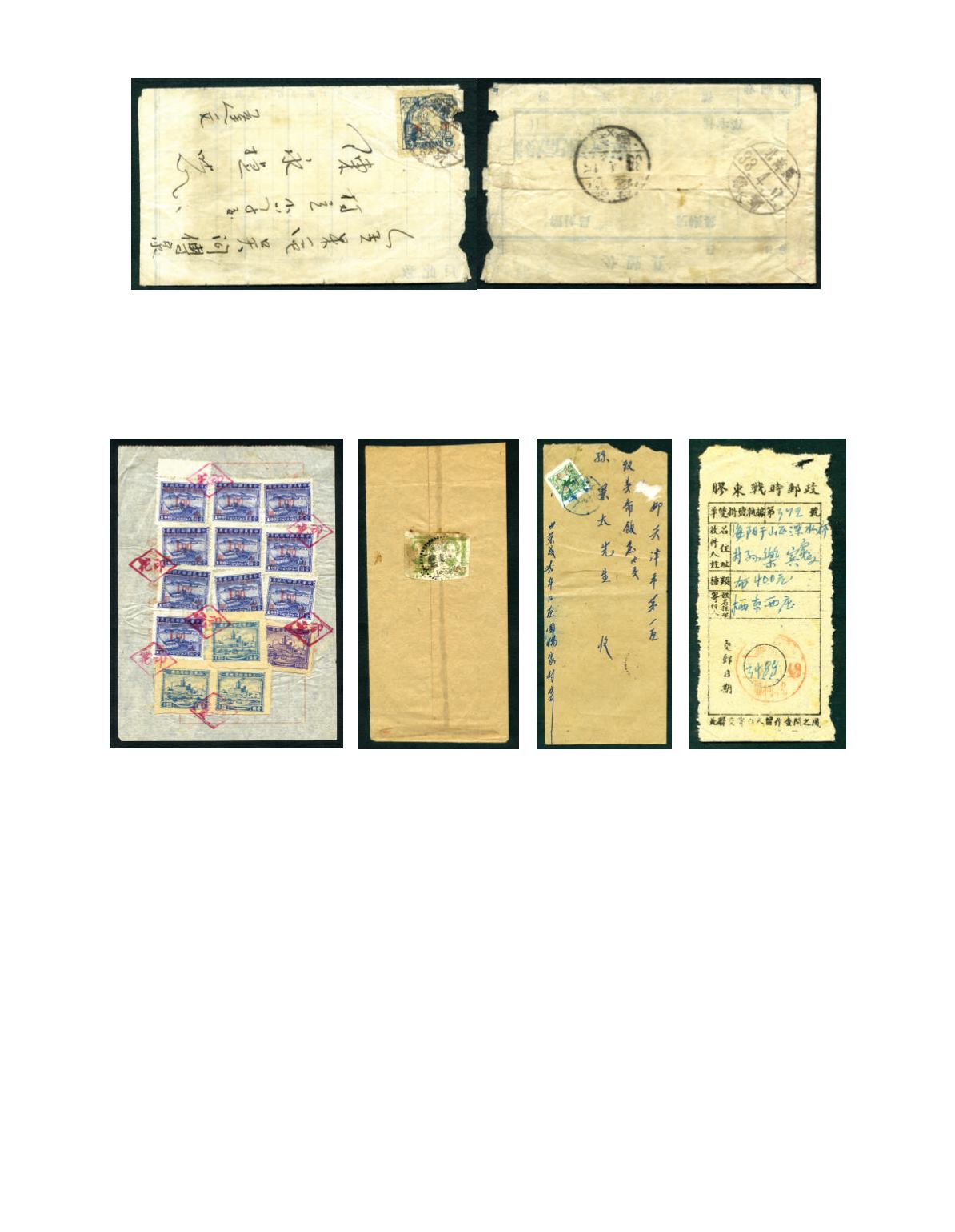 1945 (23 Sept.) A cover from Shantung to Tientsin, on front bearing Chiao-Tung Area, Beihai currency, hand surcharge with char.