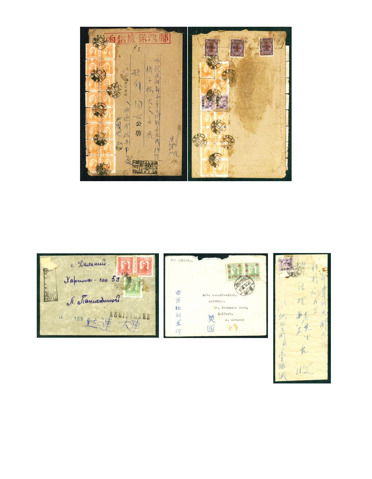 Office/No. 63' frame box, and 'Harbin/6.11.47' arrival cds. On reverse bearing the same issue block of 4 & block of 8 (Yang  NE3)
