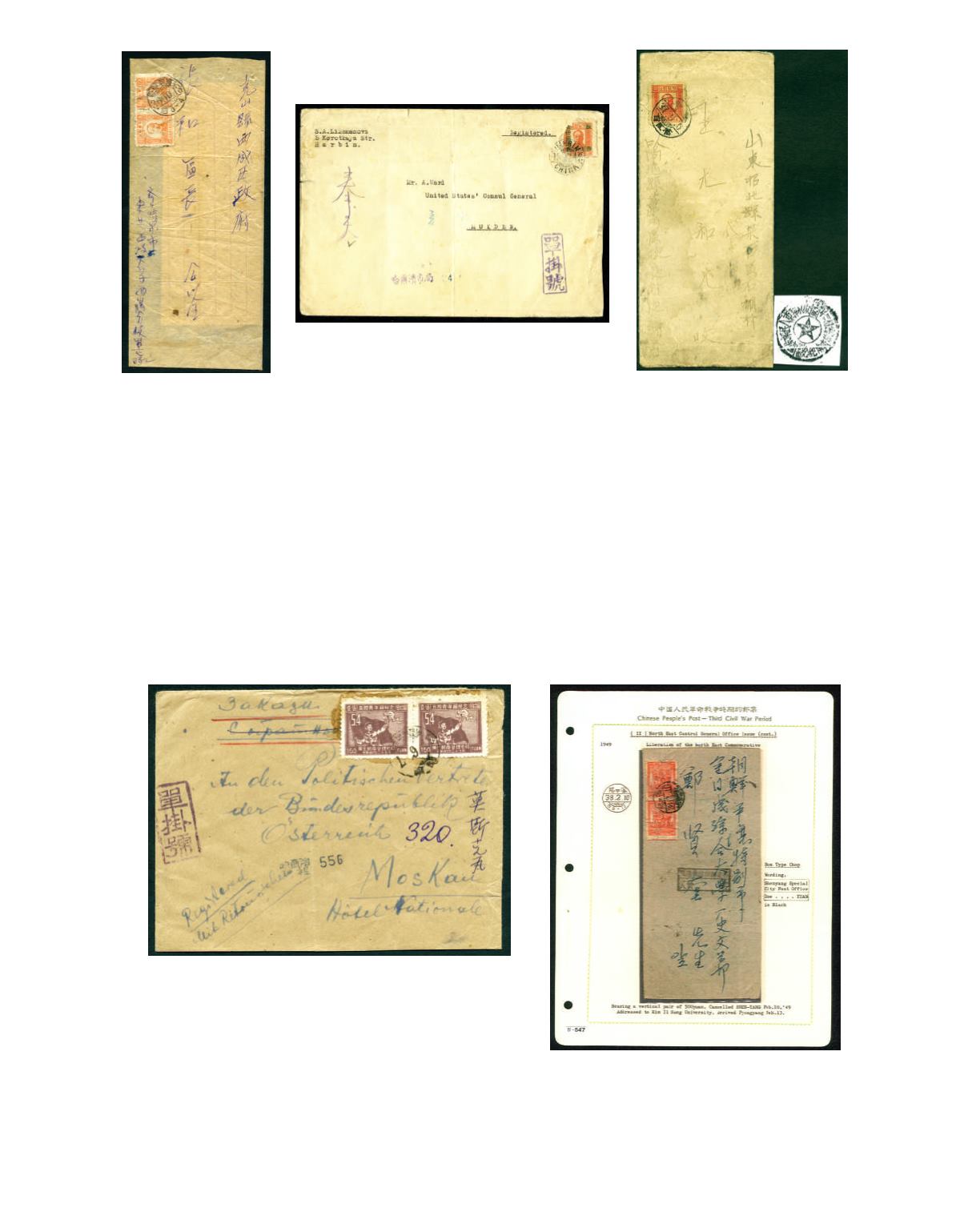 Due…Yuan' in char. black frame chop. on reverse 'PYONGYANG/13.2.49' arrival cds, very fine and rare use of a Liberated Area