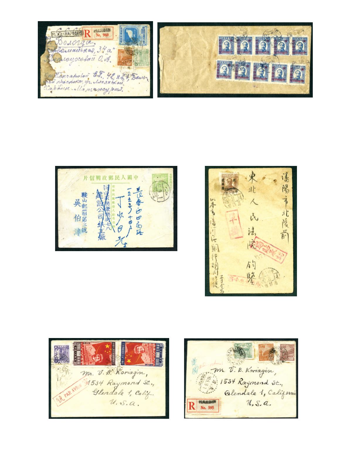 1950 (11 May) A cover sent to Liaodong, bearing the 5th surcharge on Chairman Mao, 1st print $3,500 on $10 blue strip of 5 x 2