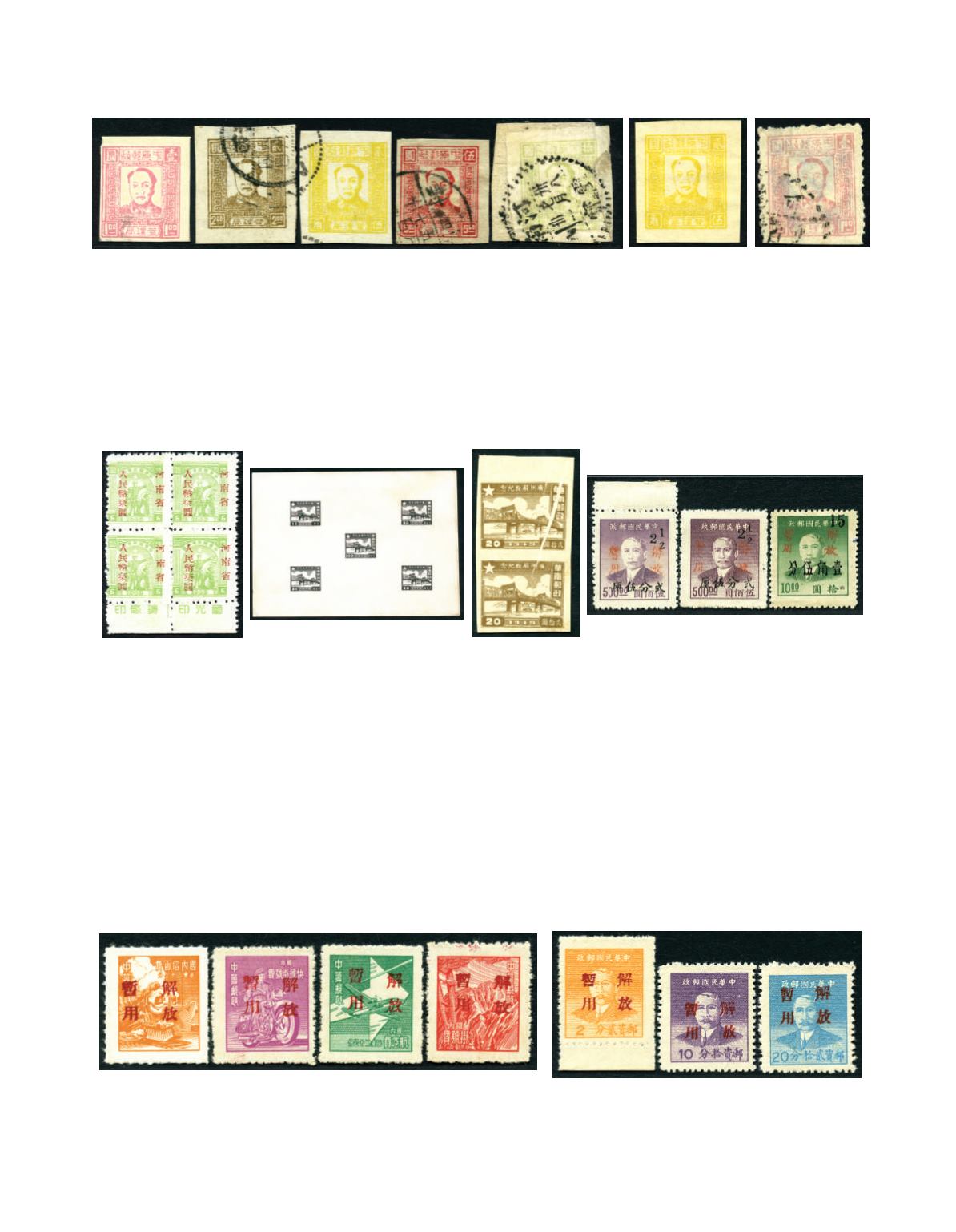 1949 Overprint red char. 'Liberation Temporarily Used For' on SYS Silver Yuan Hwanan print complete set of 3, unused and no