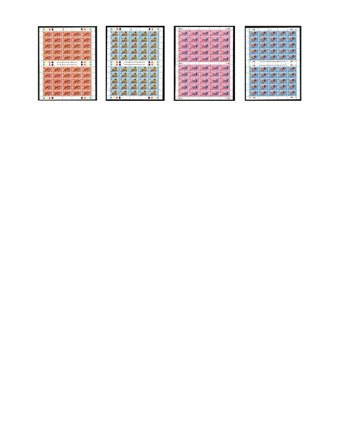 complete sheets, total 250 sets, fine. Yang C337-340, C361-364, C386-389, C406-409, C429-432, C449-452, C473-476. Photo