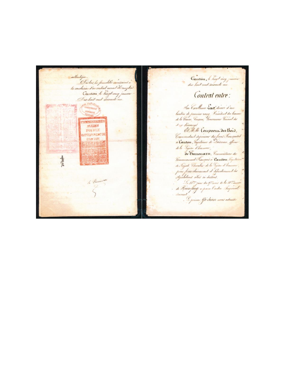 1861 (25 Jan.) A contract written in French between The Governor of Kwantung and Kwangsi and the French high military