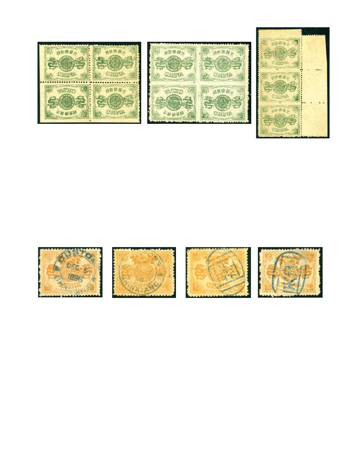 1894 Dowager first printing 12 cands brown orange, tied by full strike of 'PEKING' blue seal chop. Chan 29. Photo