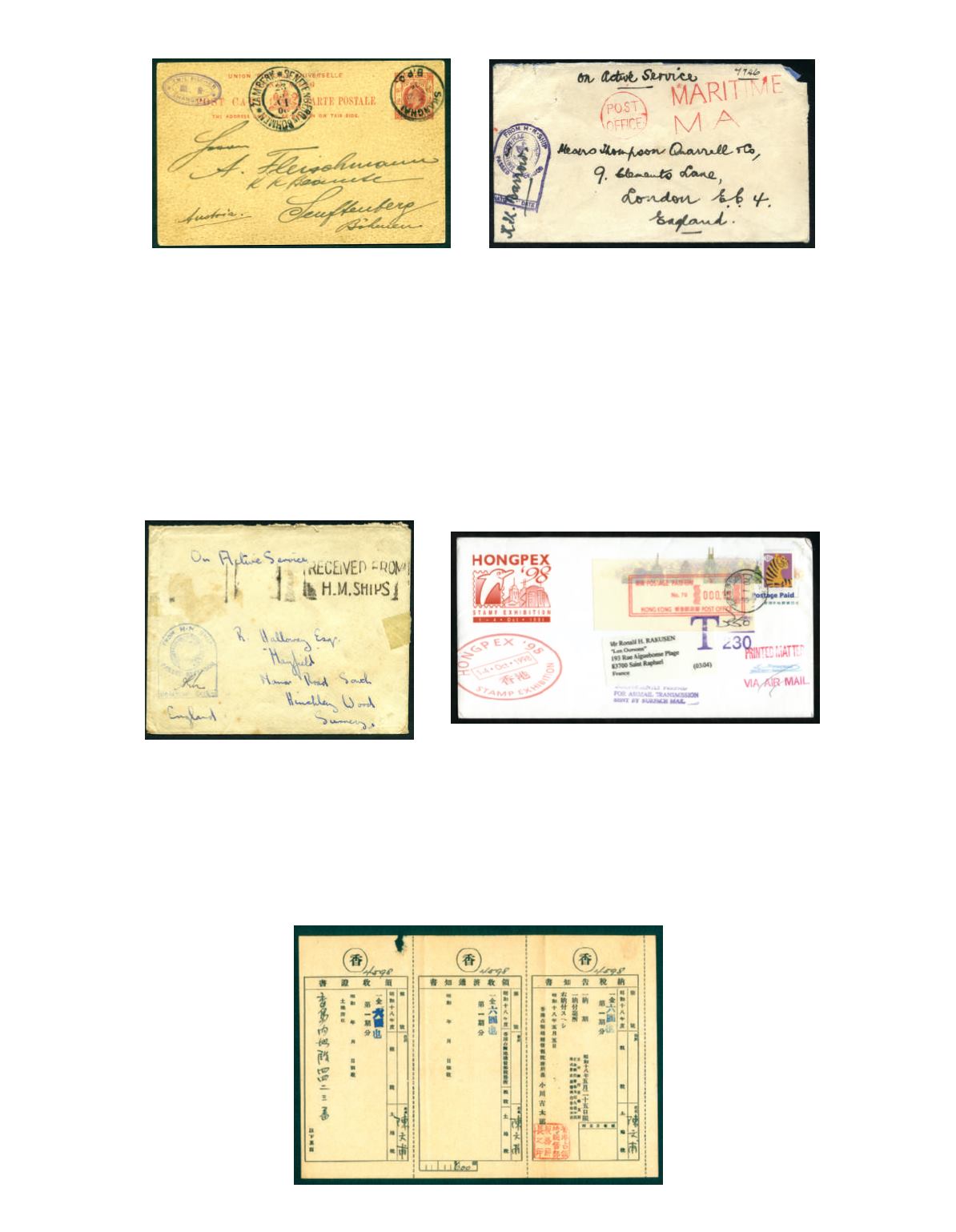 A small selection of HK postal stationery commercially used, from QV to QE, including a few Treaty Ports cancellation, QE reg.