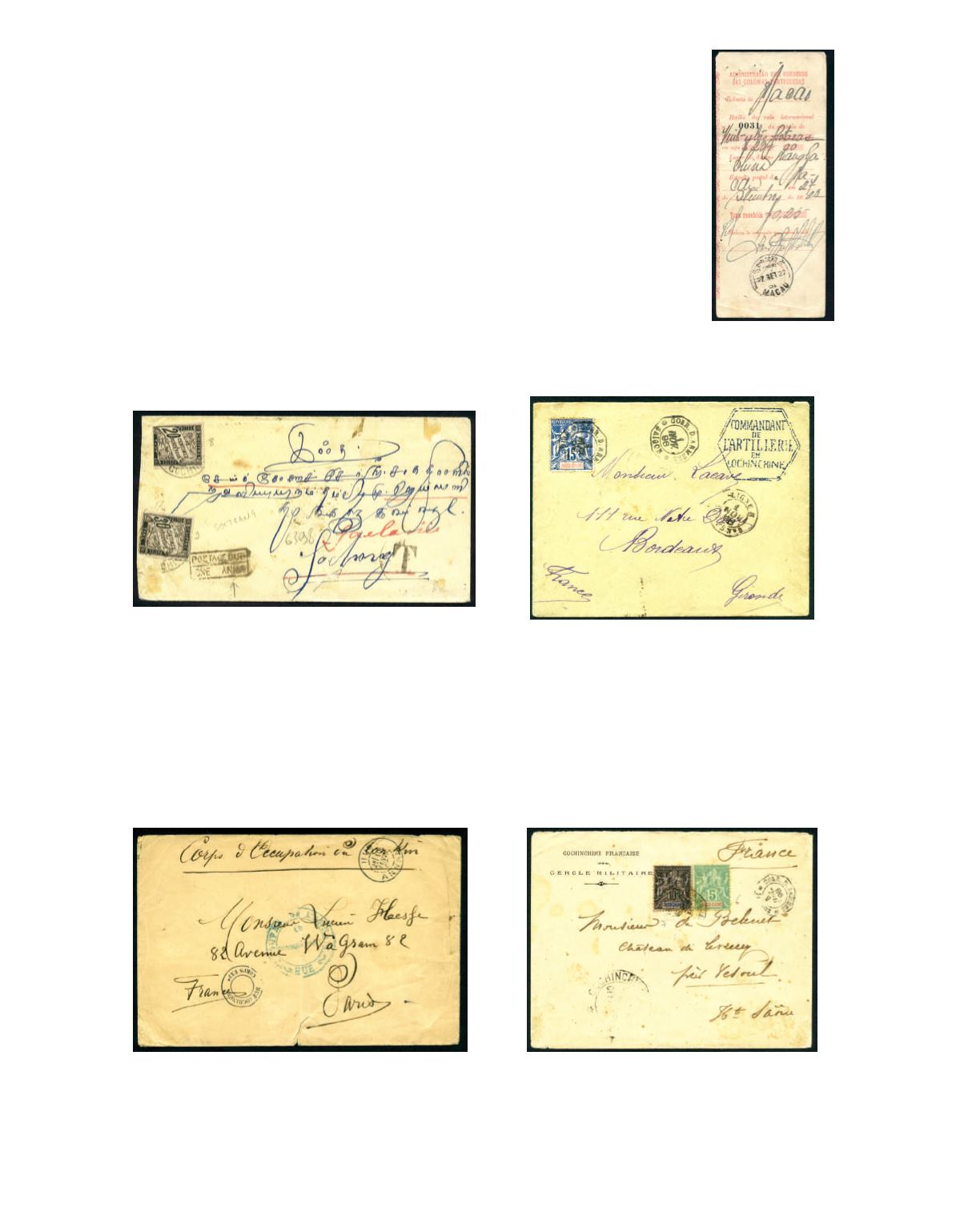 'CORP.D.ARMEES/SAIGON' cds, alongside h/s 'Commandant De L'artillerie En Cochinchine' blue chop in hexagon and double