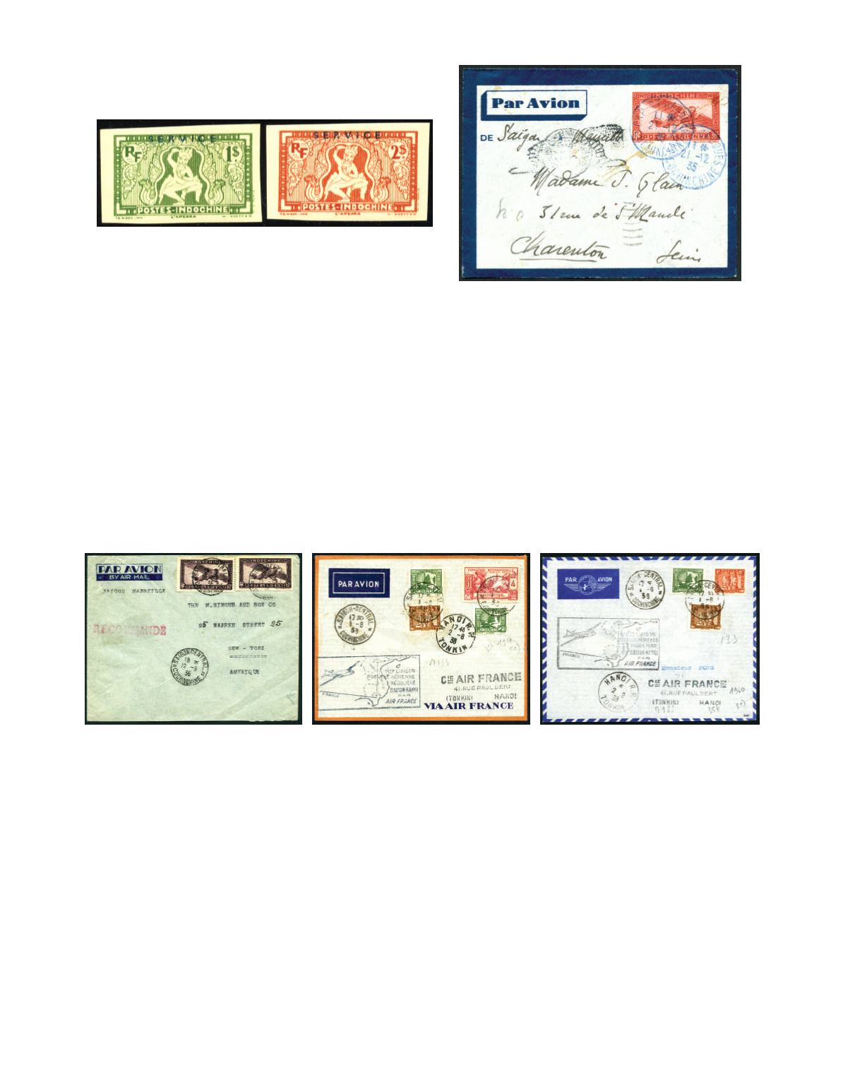 2 Aug., 1938 on both sides and a restangular pictorial handstamp in commemoration of the first flight SAIGON-HANOI PAR AIR