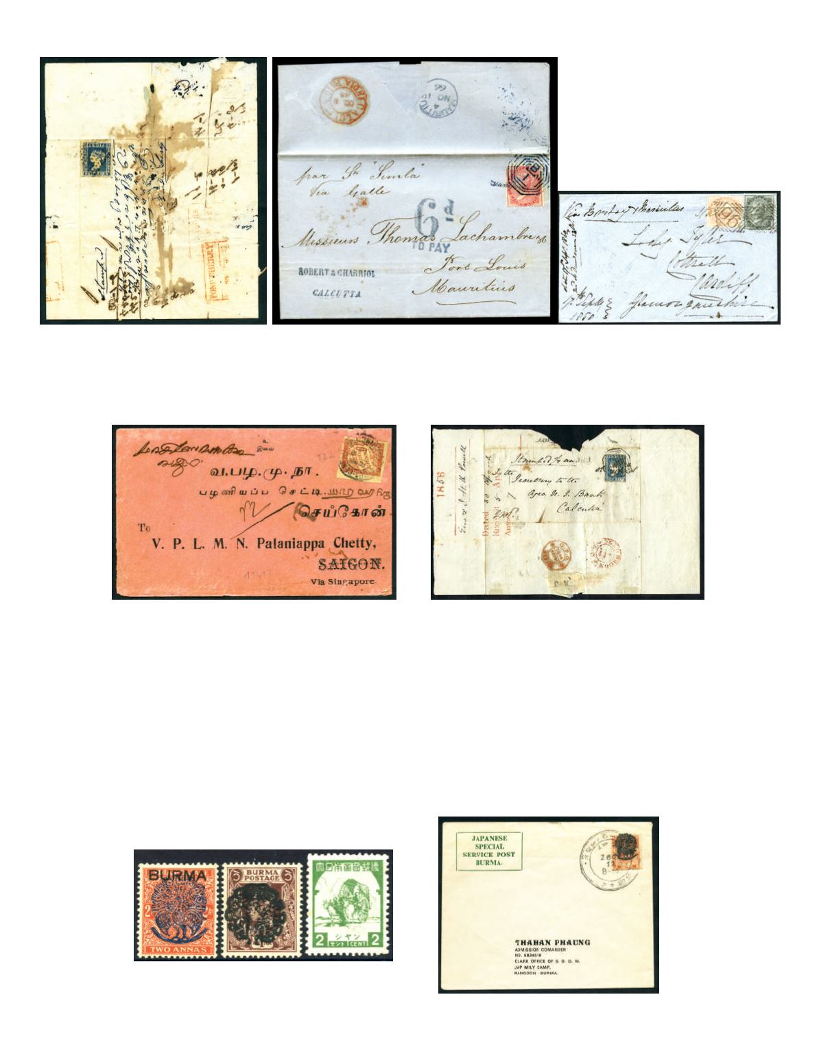 numerals '96' cancellation, and also 1866 entire letter from Calcutta to Mauritius, par Str Simla, via Galle, bearing 1856 QV 8a